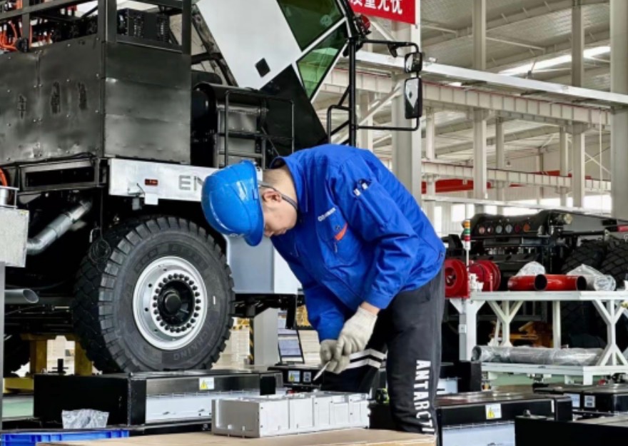 近日,EM186H型新能源智能矿卡产线多批次试生产与联调联试接近尾声。乌海铱钼新能源科技有限公司董事长张华坤表示:“目前产品具备多能源兼容、高载重、可无人驾驶等核心优势,产线已完成多批次试生产与联调联试,产品正在逐步走向海外市场。”