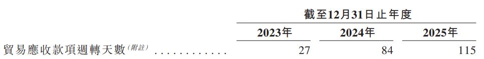与之相对应,公司的贸易应收款项周转天数从2023年的27天,上升至2024年的84天,并进一步增至2025年的115天。长达近四个月的收款周期,反映出易景信息在产业链中面对下游大客户时的资金结算现状。公司解释称,主要由于2024年及2025年第四季度智能终端产品及AIoT(人工智能)产品的销售额相对较高。尽管报告期内授予客户的信贷期保持相对稳定,但由于收入下降,公司的贸易应收款项周转天数于2025年增加至115天。